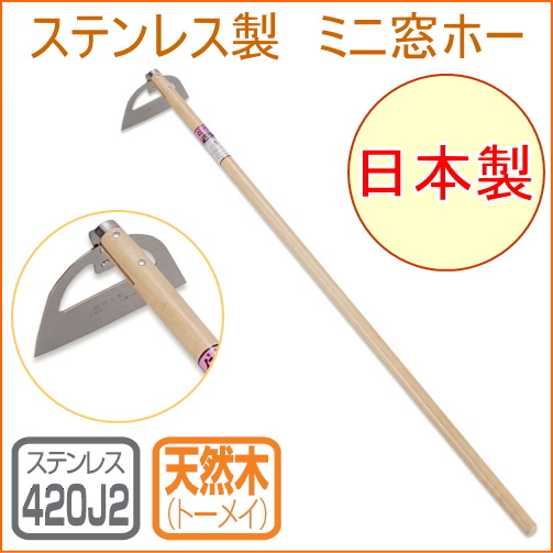 仁作 ステンレスミニ窓ホー (No1014) 日本製 ステンレス製 畑 庭 草取り 土寄せ 土ならし 立鎌ホー 鎌