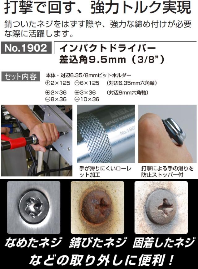 ANEX インパクトドライバー 差込角9.5mm ビット6pc (No1902) 日本製 ソケット ねじ つぶれる 錆び サビ