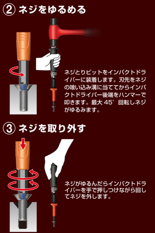 叩いてなめてしまったネジを取り外すのに便利なネジ取り専用アイテム。