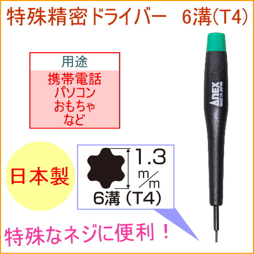 ANEX 特殊精密ドライバー 6溝 T4 (No3470D) 日本製 パソコン 携帯電話 おもちゃ 便利