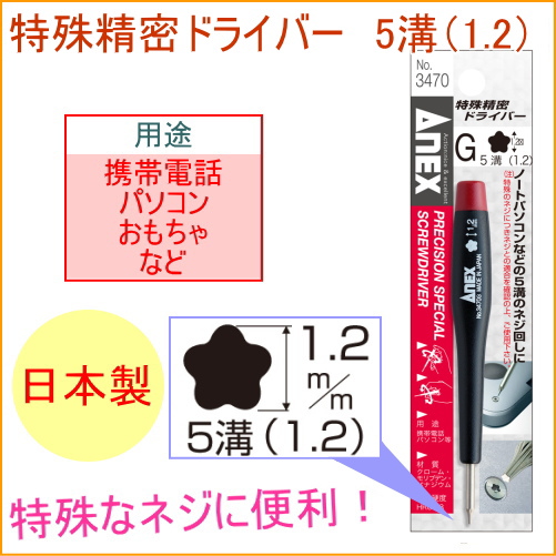 ANEX 特殊精密ドライバー 5溝 1.2 (No3470G) 日本製 パソコン 携帯電話 おもちゃ 便利