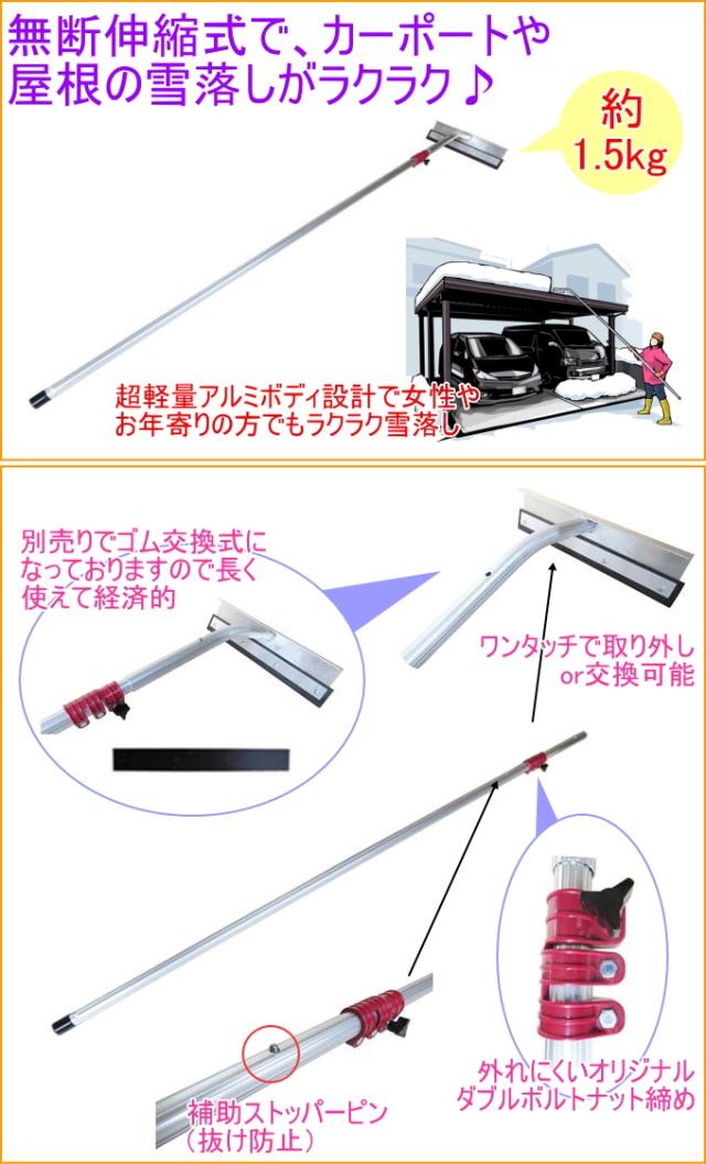 伸縮式なので、屋根、カーポート、背の高いトラックのなどの雪下ろしを行えます。