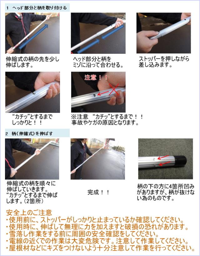 伸縮式なので、屋根、カーポート、背の高いトラックのなどの雪下ろしを行えます。