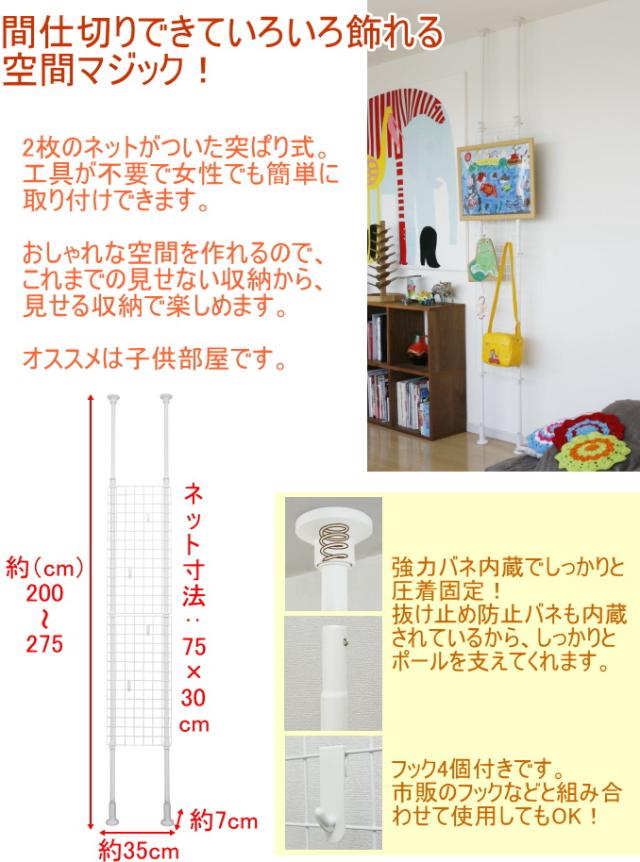 突ぱりネット間仕切り 35cm幅 (TNP-1) 突っ張り 突っぱり つっぱり つっぱり棒 ハンガー 収納 伸縮 ポール