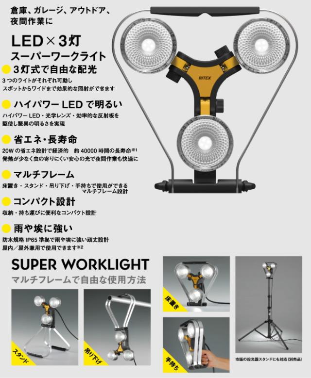 LED×3灯 スーパーワークライト (WT-1000) 送料無料 アウトドア レジャー キャンプ バーベキュー DIY 作業用品 倉庫 ガレージ 夜間作業 省エネ