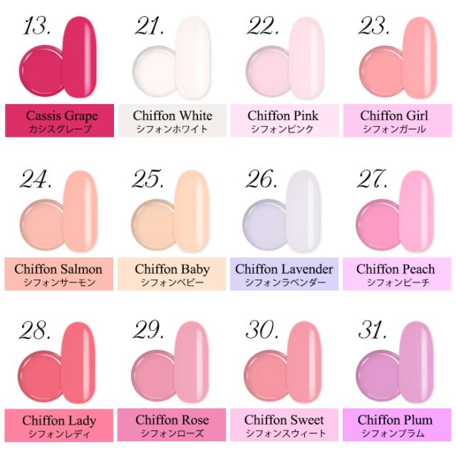 ・カラーの色味によって、顔料の量に違いのため、ジェルのテクスチャー・硬化時間には若干の個体差がございます。
