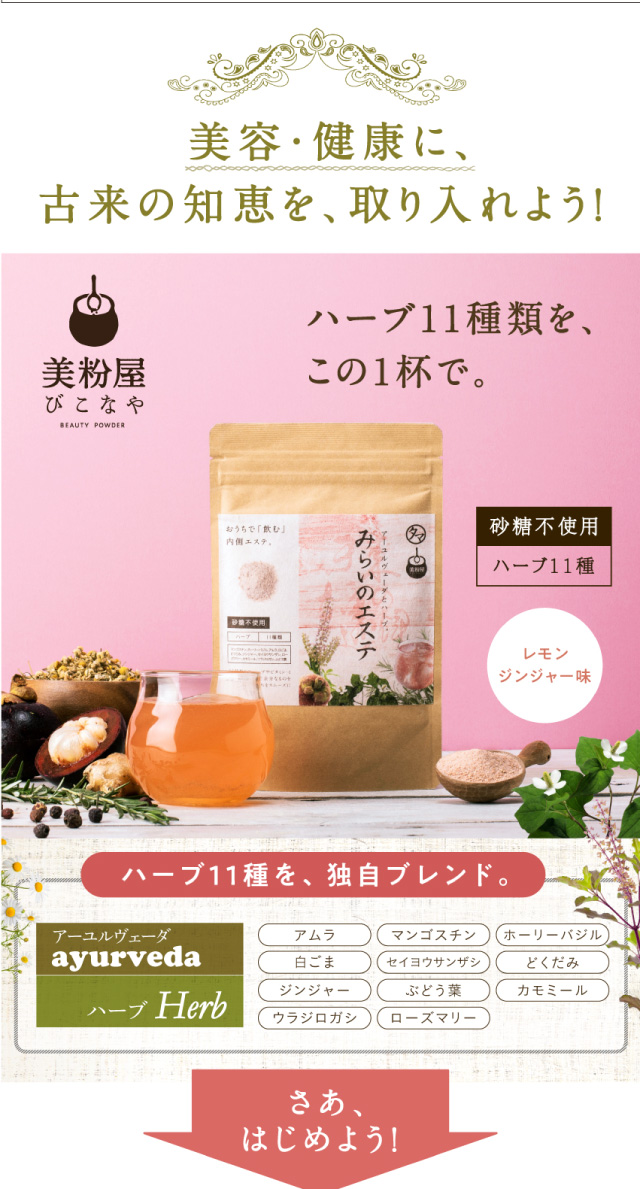 おまとめ割1袋あたり2,327円! 美粉屋 みらいのエステ100g 3袋セット 美容 健康 ハーブ飲料 生姜 ハーブティー カモミール ハーブ粉末 ハーブドリンク ハーブ飲料 リラックス ウラジロガシ ジンジャー ローズマリー どくだみ 送料無料