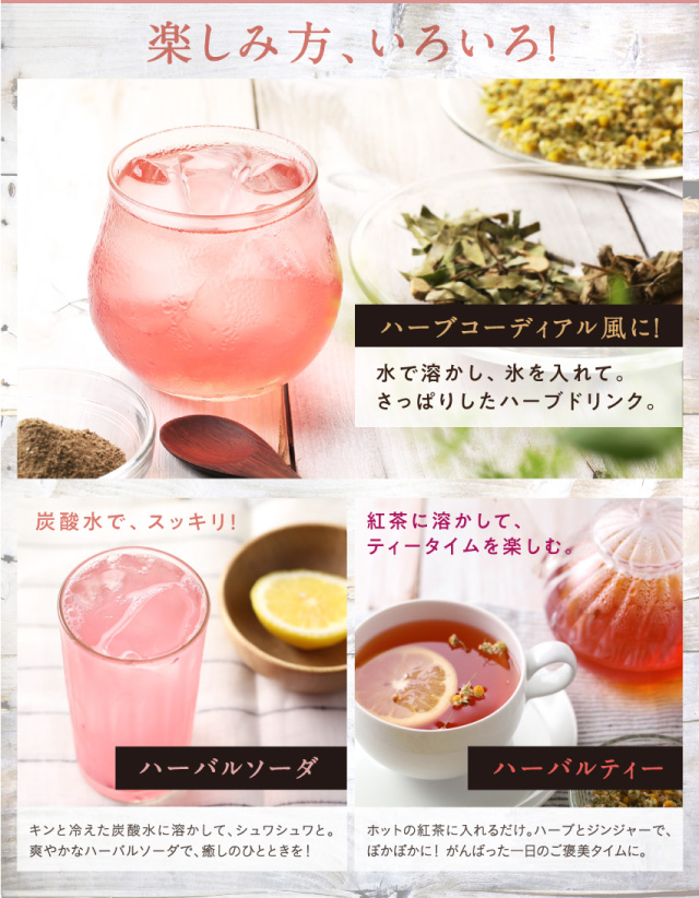 - 仕事中に飲んでいます、色も綺麗でホッと癒されます。特にまだ実感はないですが、とても飲みやすいので、続けてみようと思います。