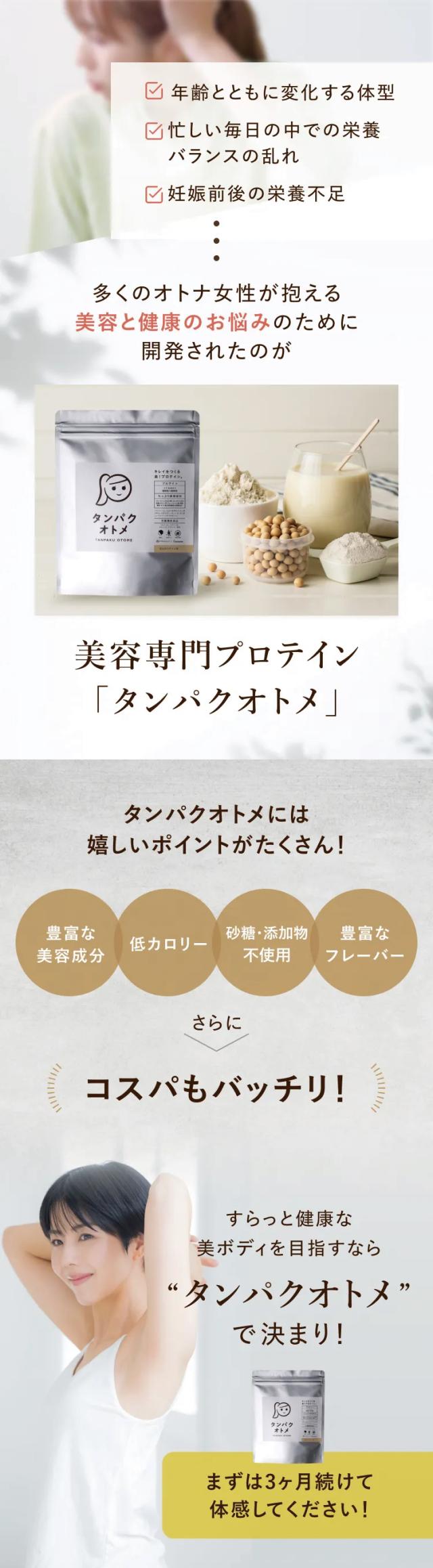 \500円OFFクーポン配布中!/女性におすすめ♪美容専門プロテイン 「タンパクオトメ」 送料無料 3袋以上でシェイカープレゼント!ホエイ ソイ プロテイン タマチャンショップ 大豆ソイ W配合 タンパク質 美容成分 低糖質 植物性 サプリ 朝 ダイエット 健康 美容 受賞