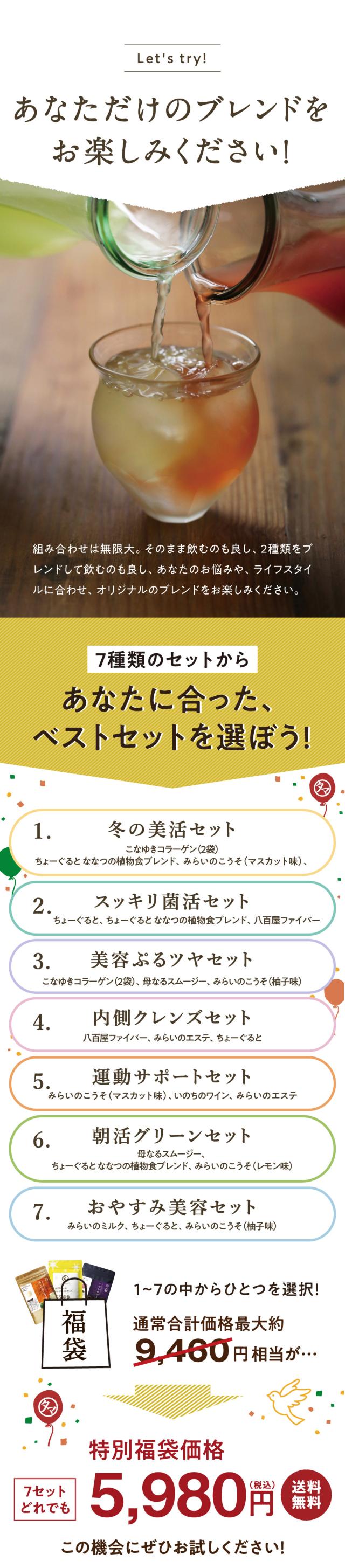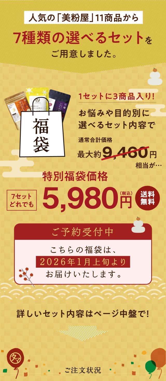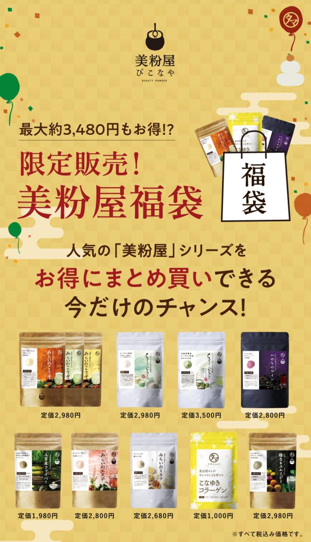 \最大3,300円お得!/2026年「美粉屋福袋」7種類の組み合わせから選べる (メール便)(※シェイカーは付きません)美粉屋 福袋 セット 健康ドリンク ビタミン セール 酵素 コラーゲン スムージー ポリフェノール 鉄分 葉酸 サプリ サプリメント SALE タマチャンショップ