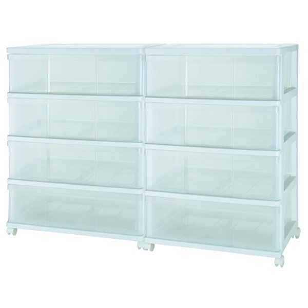 収納ボックス 収納ケース 引き出し ワイド チェスト プラスチック 4段 2個組 幅60cm おしゃれ ホワイト 送料無料【自社製造】