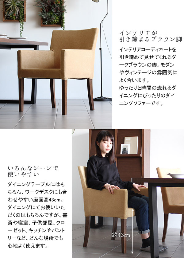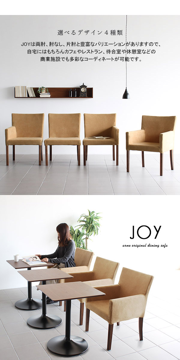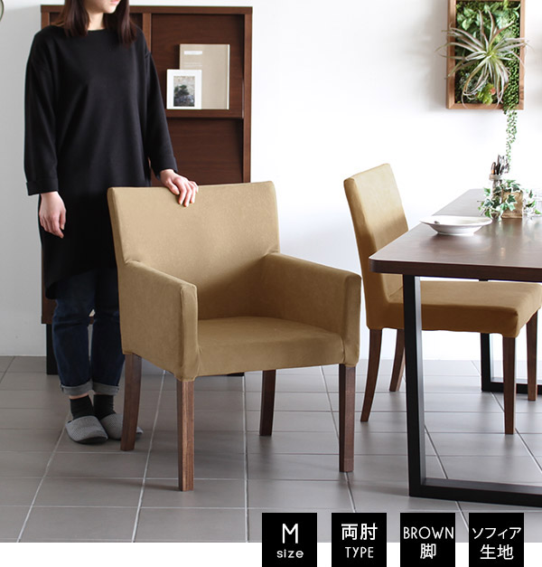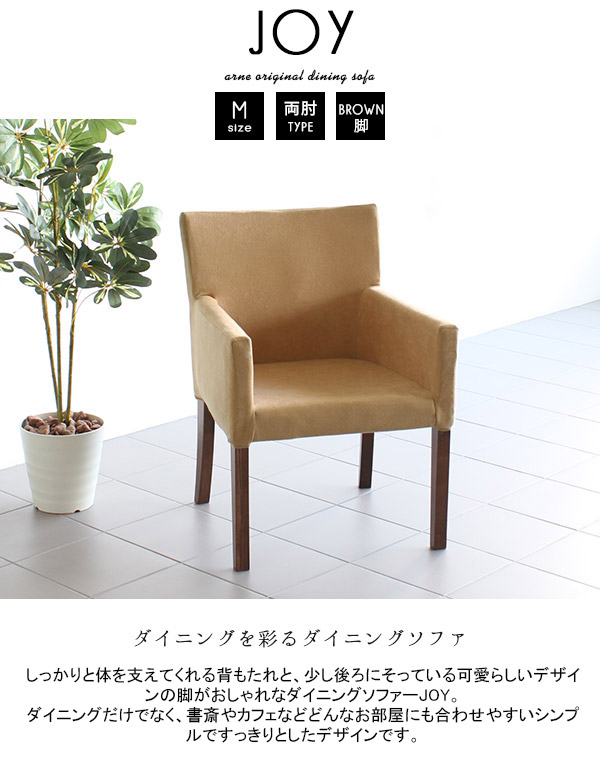 ダイニングチェア 肘付き ファブリック 北欧 おしゃれ JOY 1P Mサイズ 両肘タイプ ソフィア生地 ブラウン脚 1脚 □