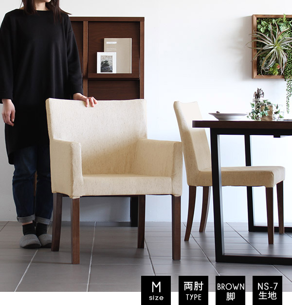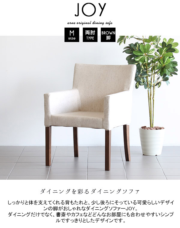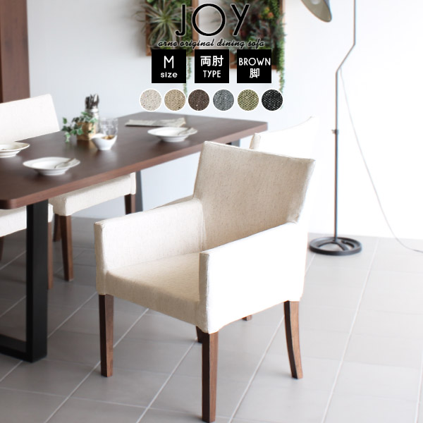 ダイニングチェア 肘付き ファブリック 北欧 おしゃれ JOY 1P Mサイズ 両肘タイプ NS-7生地 ブラウン脚 1脚 □