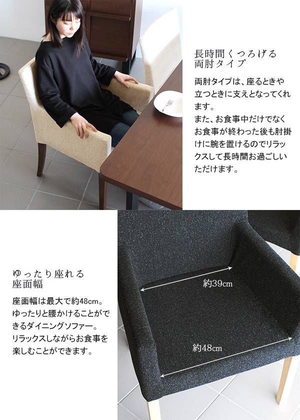 ダイニングチェア/肘付き/ファブリック/北欧/おしゃれ/ダイニング椅子