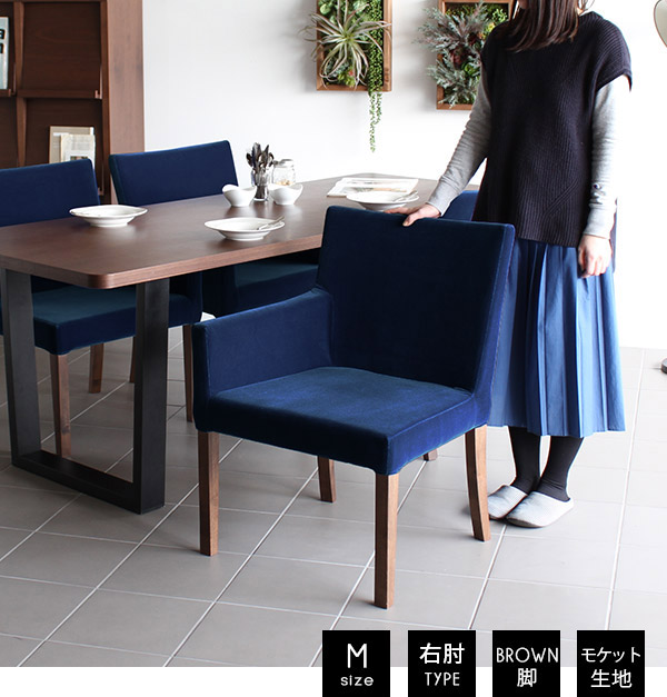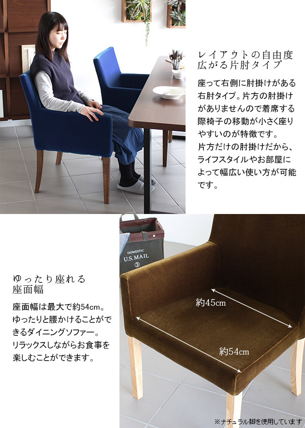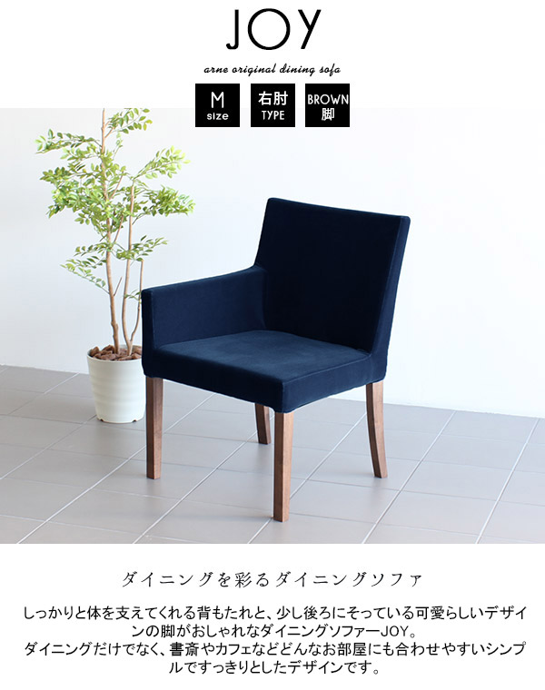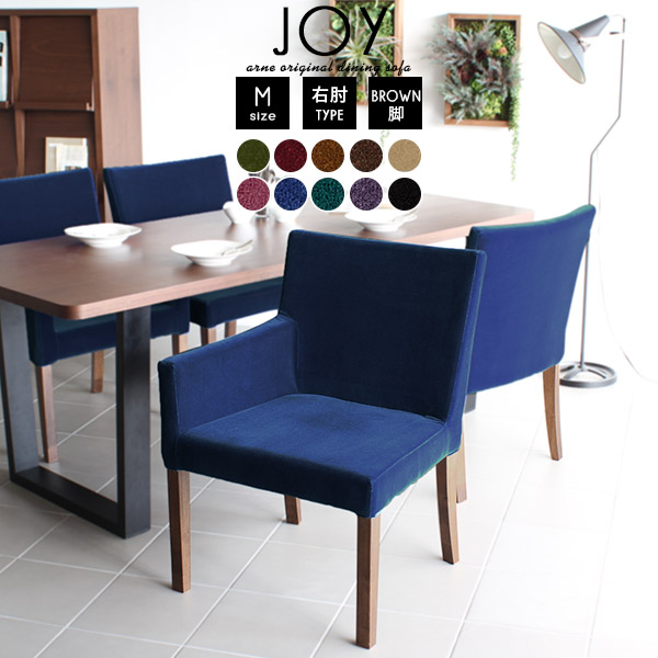 ダイニングソファ ダイニングチェア カフェ おしゃれ JOY 1P Mサイズ 右肘タイプ モケット生地 ブラウン脚 1脚 □