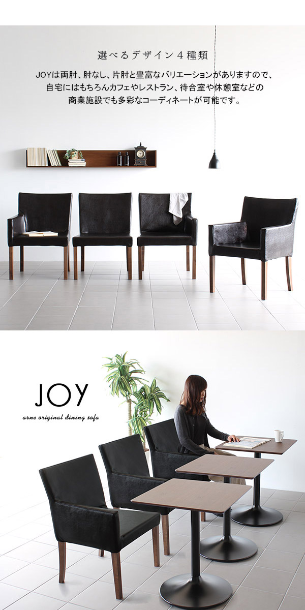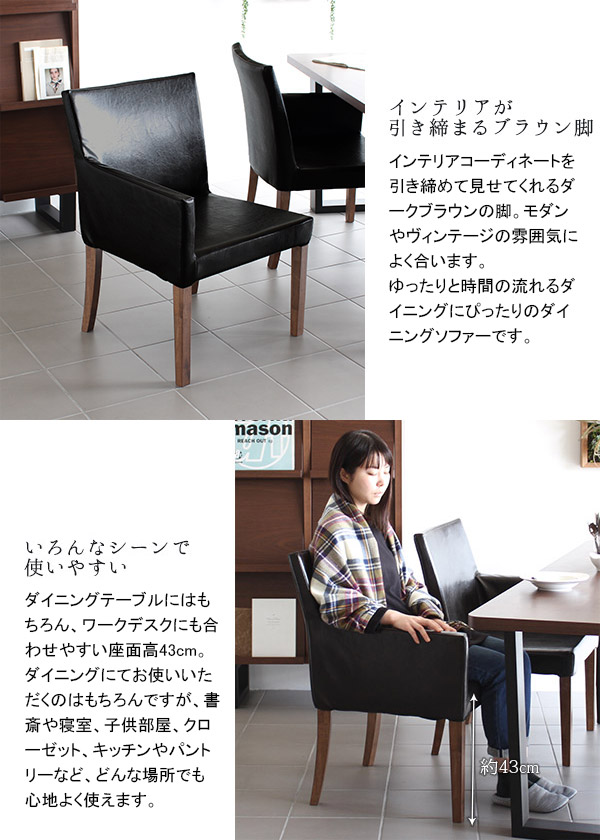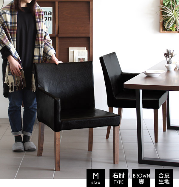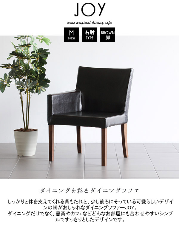 ダイニングチェア 合成皮革 背もたれ 肘付き おしゃれ ダイニングソファ JOY 1P Mサイズ 右肘タイプ 合皮生地 ブラウン脚 1脚 □