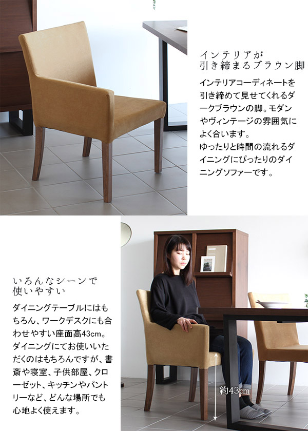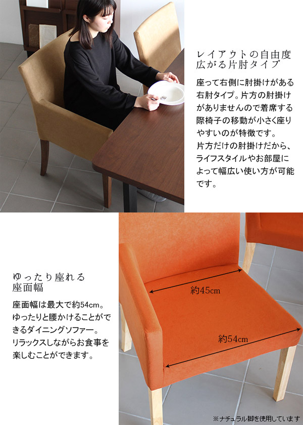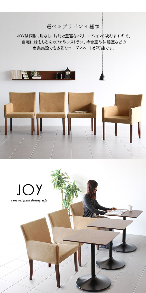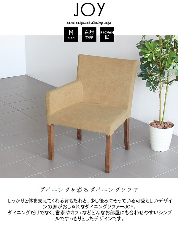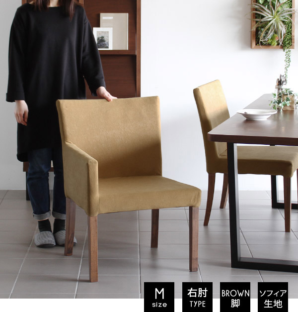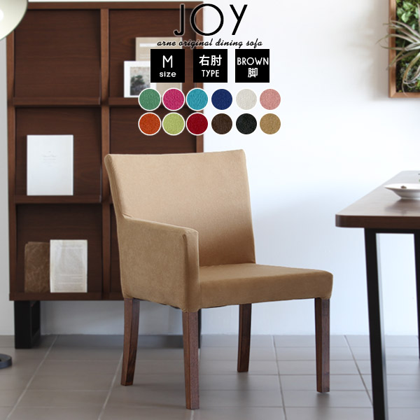ダイニングチェア 肘付き ファブリック 北欧 おしゃれ JOY 1P Mサイズ 右肘タイプ ソフィア生地 ブラウン脚 1脚 □