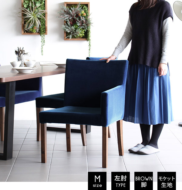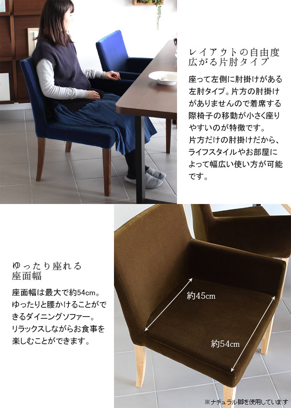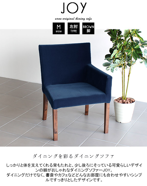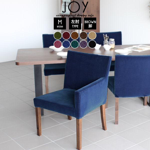 ダイニングソファ ダイニングチェア カフェ おしゃれ JOY 1P Mサイズ 左肘タイプ モケット生地 ブラウン脚 1脚 □