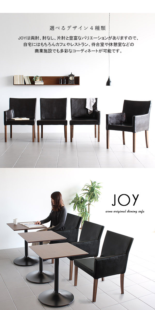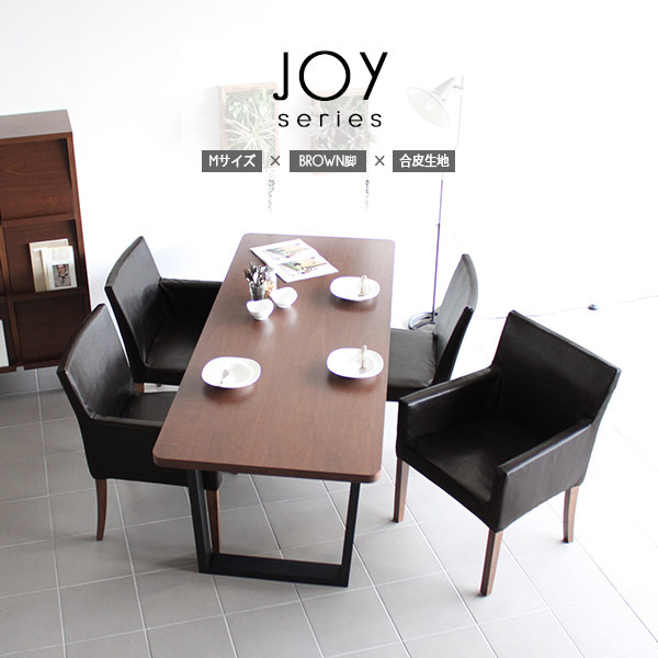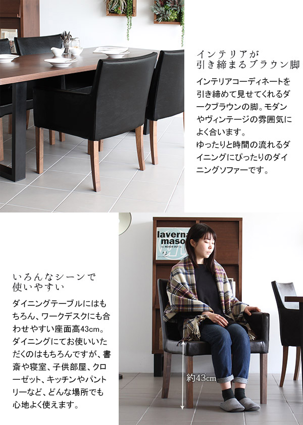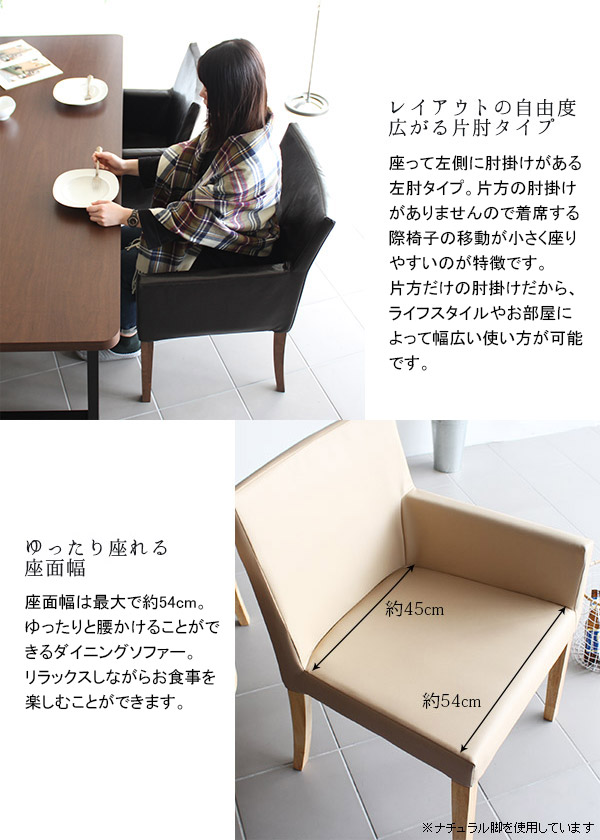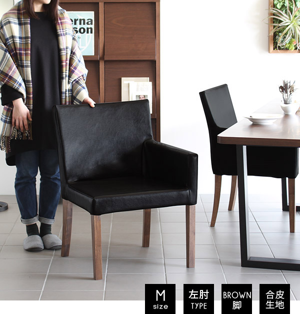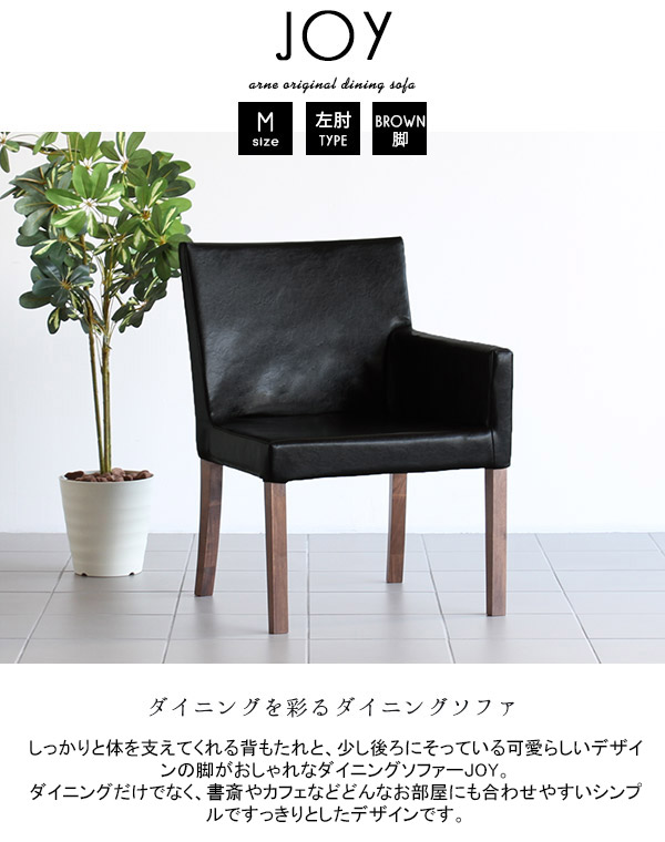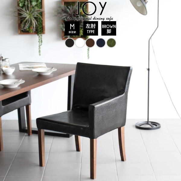 ダイニングチェア 合成皮革 背もたれ 肘付き おしゃれ ダイニングソファ JOY 1P Mサイズ 左肘タイプ 合皮生地 ブラウン脚 1脚 □