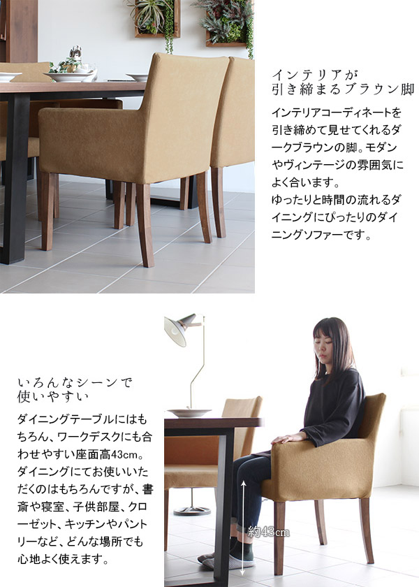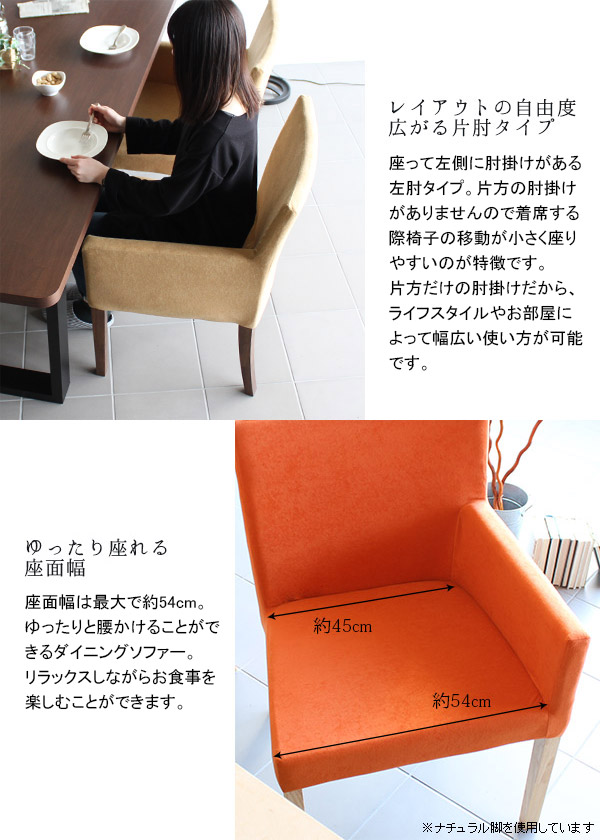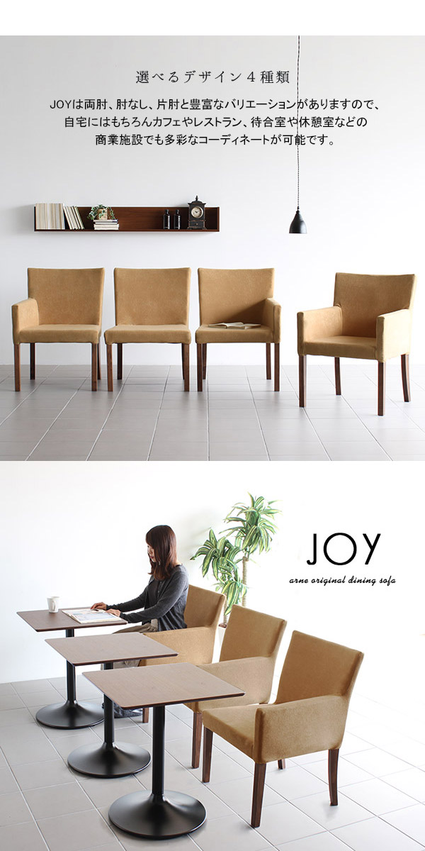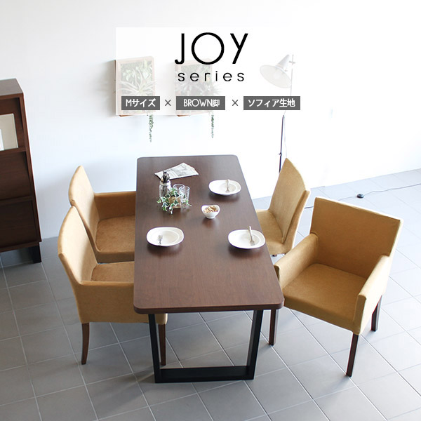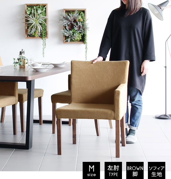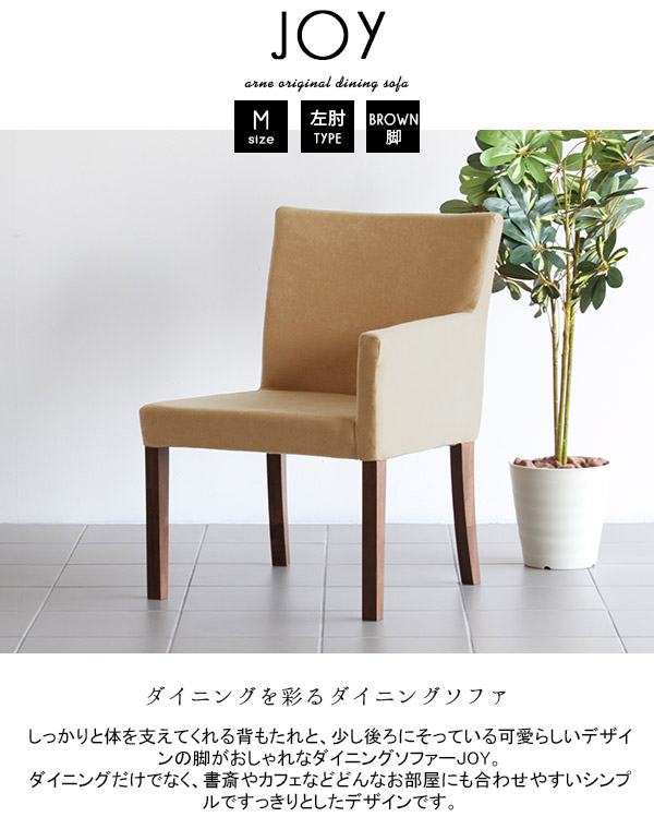 ダイニングチェア 肘付き ファブリック 北欧 おしゃれ JOY 1P Mサイズ 左肘タイプ ソフィア生地 ブラウン脚 1脚 □