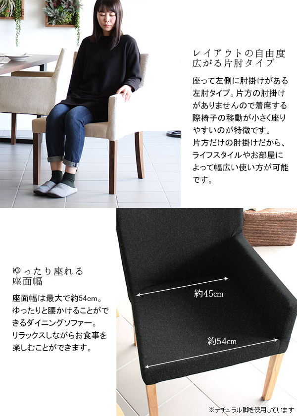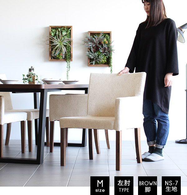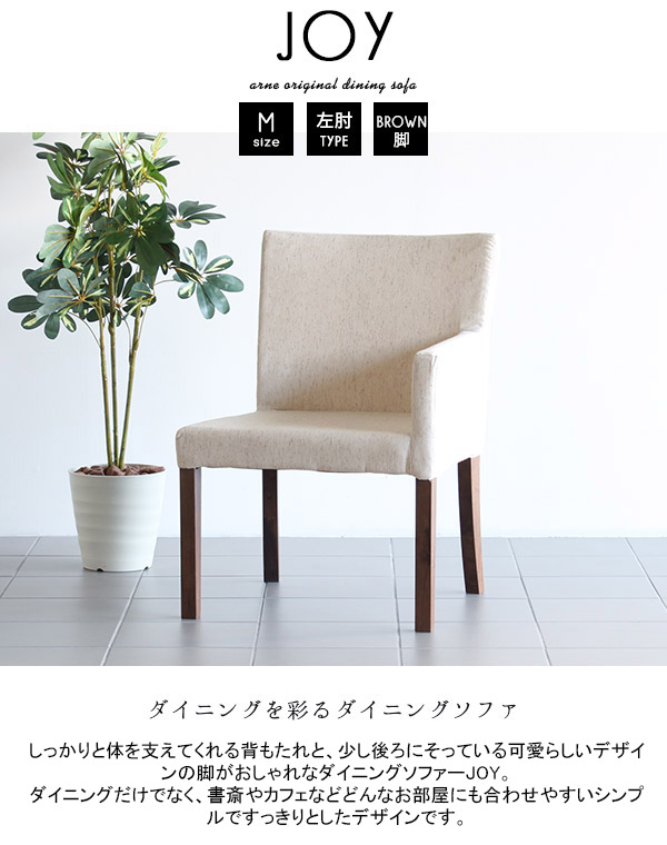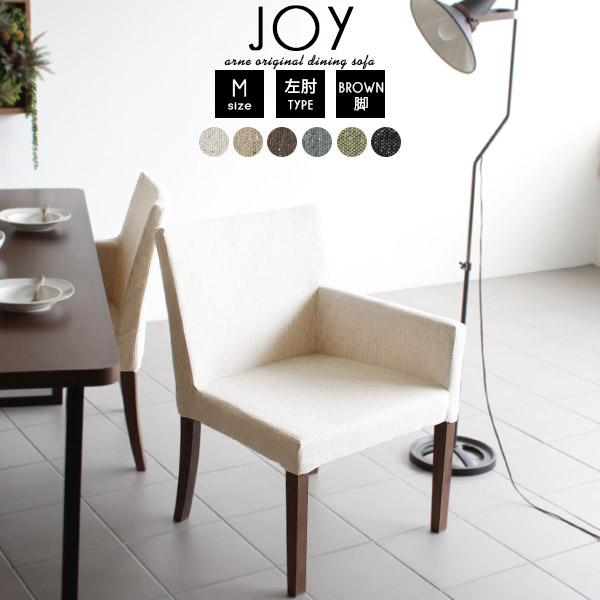 ダイニングチェア 肘付き ファブリック 北欧 おしゃれ JOY 1P Mサイズ 左肘タイプ NS-7生地 ブラウン脚 1脚 □