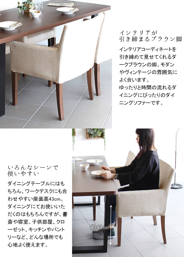 ダイニングチェア/肘付き/ファブリック/北欧/おしゃれ/ダイニング椅子