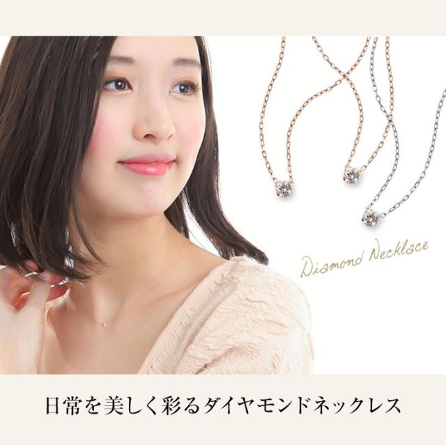 【厳選されたダイアモンド】鑑定士が輝き・テリの良い天然ダイヤを厳選してお届け。シンプルなデザインのダイヤモンドネックレスは、ご自身へのご褒美はもちろん、彼女や妻へのプレゼントなど、特別な贈り物としてもおすすめです。【無料ギフト包装】クリスマス・プロポーズ・誕生日プレゼント・結婚のお祝いや記念日に。またホワイトデー・母の日・出産後のプレゼントに、お嬢様への卒業や入学のお祝いなどのプレゼントとしても人気の商品です。1粒タイプのダイヤネックレスは、普段使いのカジュアルなスタイルからパーティーシーンまで幅広く活躍してくれます。