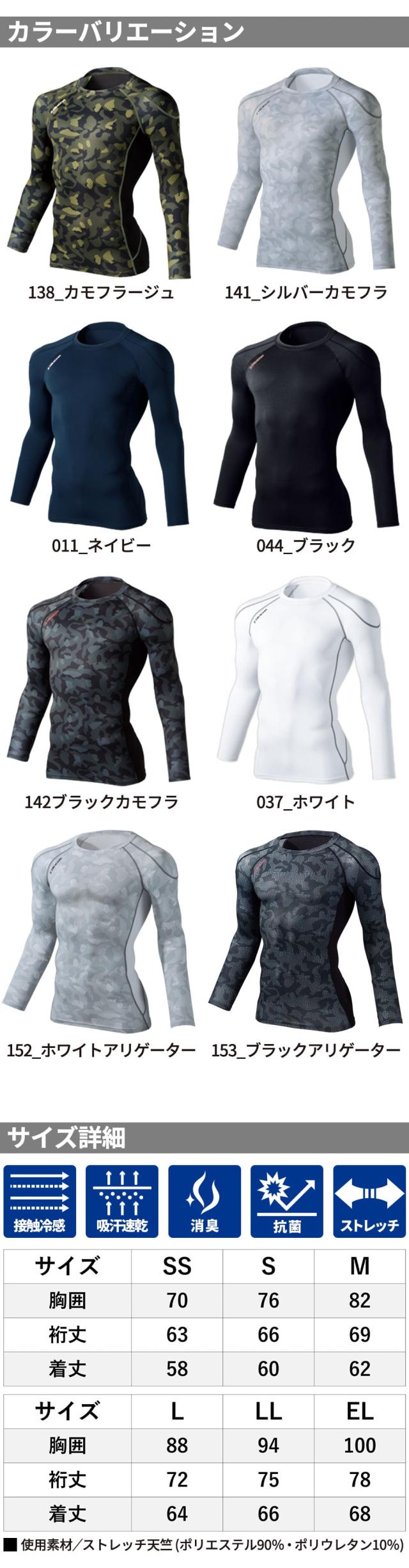 接触冷感 夏用インナー メンズ 自重堂 Z-DRAGON 長袖シャツ 75124 ロングスリーブ 春夏 暑さ対策 涼しい 吸汗 速乾 冷感 抗菌 防臭
