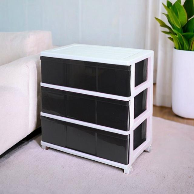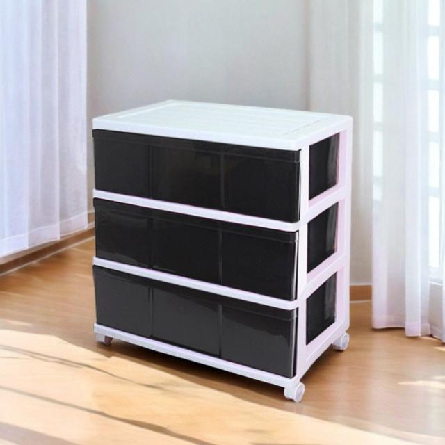 収納ケース 引き出し ワイド チェスト プラスチック 3段 幅60cm おしゃれ ホワイト/ブラック 日本製 送料無料
