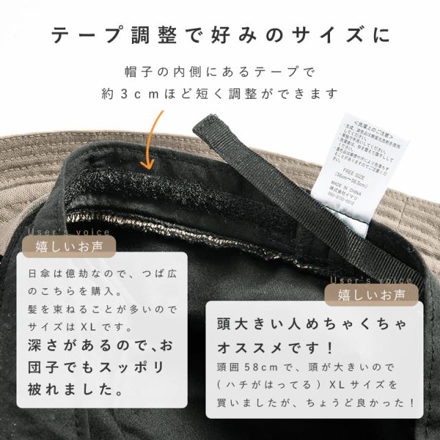 - つばが大きいので、紫外線、日差し対策にたすかりました。アゴ紐も付いていて使い勝手良いです。