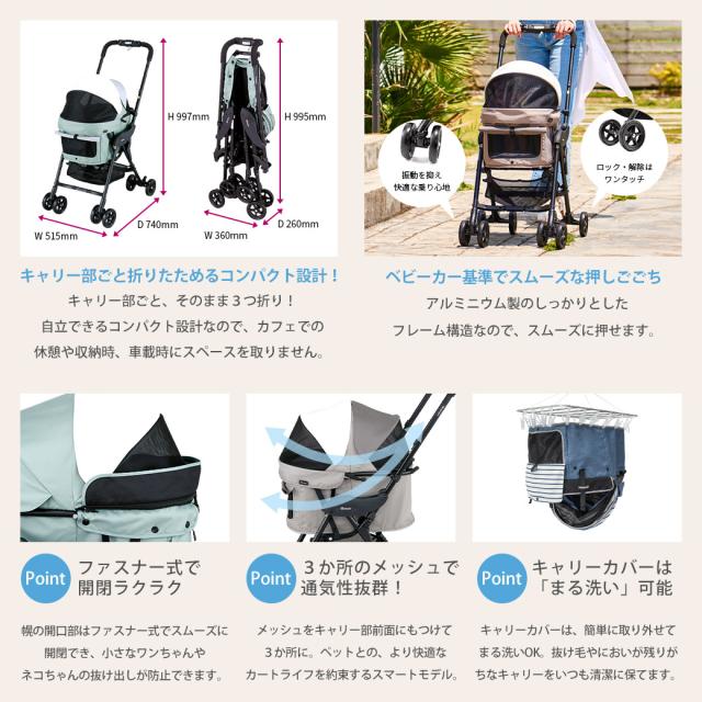 コムペットミリミリライトアルファは、愛するペットとのお出かけをもっと快適にするための軽量コンパクトなカートです。