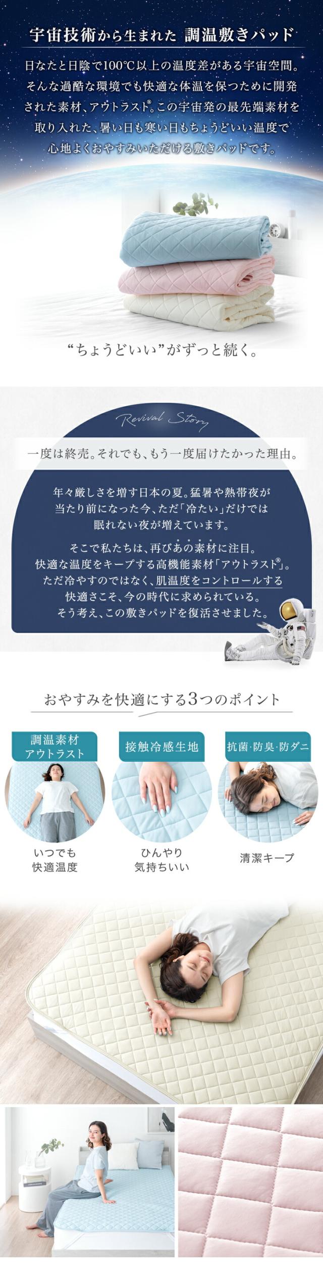 【正午〜P5%還元】 敷きパッド シングル ひんやり 《宇宙発》 アウトラスト 抗菌 防臭 防ダニ 洗える 接触冷感 調温 敷パッド ベッドパッド ベッドパット ベットパット シーツ パッドシーツ ひんやりマット 冷感 涼しい 夏用 おしゃれ