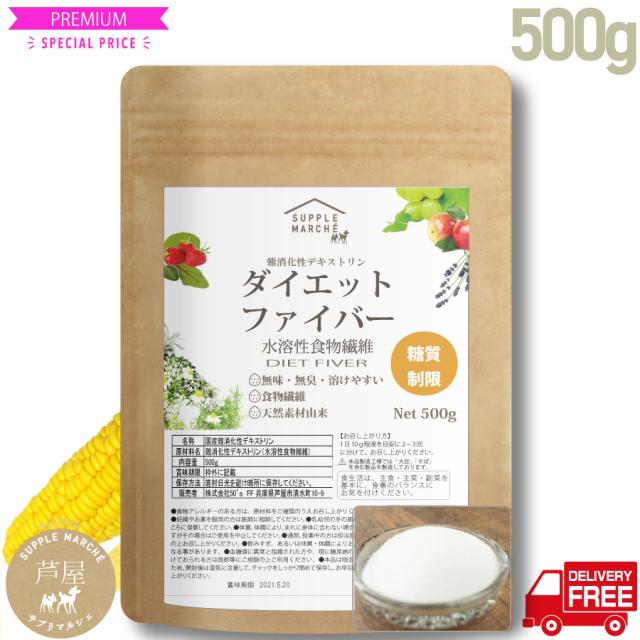 難消化性デキストリン500g(微粉末タイプ) ダイエットファイバー送料無料 とうもろこし 水溶性食物繊維 ト●ホグレード 無味無臭