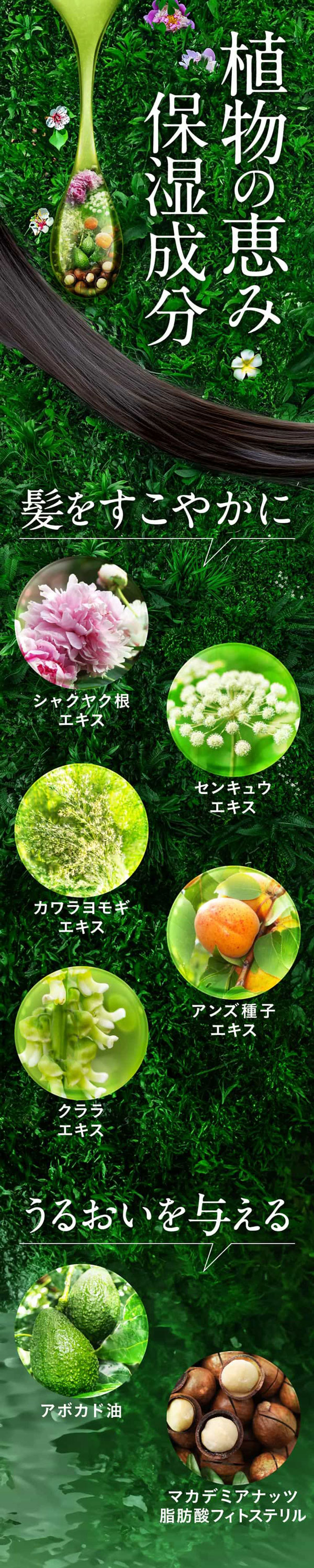 髪の内部にしっかりと保湿成分を届け、しなやかでハリのある美しい髪へ導きます。また、不要なものを洗い落とし無防備になった髪を必要最低限のコーティングで整えサポートします。