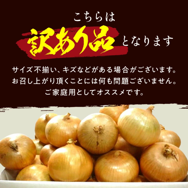 - 玉ねぎがすごく大きくて、2人での生活だと半分にカットして十分なくらいです。 訳ありと有りますが、サイズの選別をしてないことなのかなあと。 品質はいつも満足です。