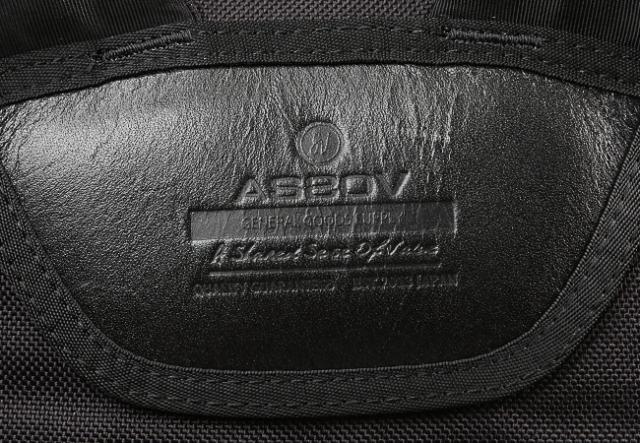 経年変化が楽しめる真鍮素材のAS2OVオリジナルネームプレート。ファスナーにもロゴ入り。