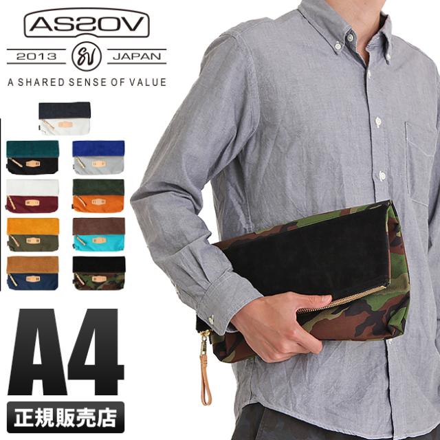 【ブランド】AS2OV(ASSOV) アッソブ【シリーズ】COMBINATION CLUCH BAG コンビネーション クラッチ バッグ【形状】クラッチバッグ【外寸】W310×H250×D35mm【重量】270g【素材】CORDURA 1000d fabric NYLON100%、カウレザースェード、オイルドベジタブルタンニンレザー