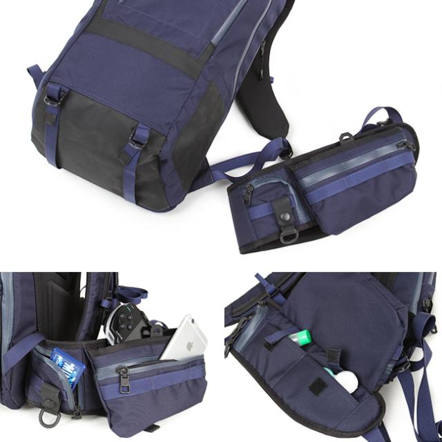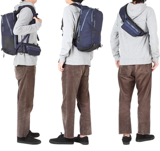ウェストハーネスは着脱可能。それぞれバックパック、ボディバッグとして別々での使用もできます。