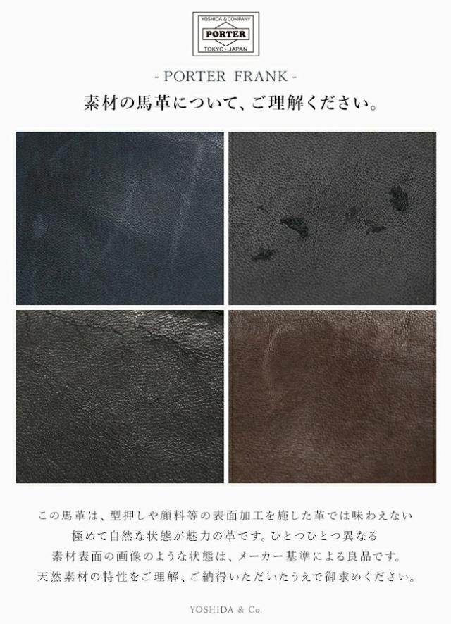 【ブランド】ポーター PORTER【シリーズ】フランク FRANK【型番】198-01341【形状】トートバッグ【外寸】W325×H350×D130mm【重量】480g【表地】馬革(クローム鞣し)【裏地】コットンサテン(ウレタンコーティング)※オリジナルのアテンション下げ札が付きます。 色落ちネームが付きます。