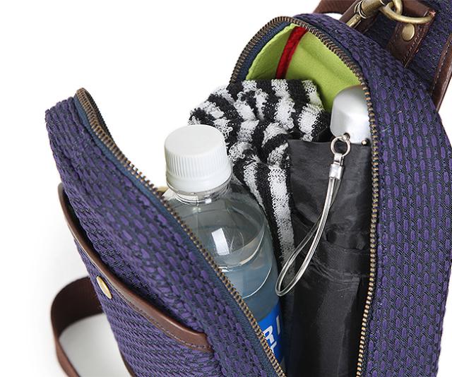 500mlのペットボトルもスッキリ収納可能。ちょっとしたお出掛けに最適なサイズ感です。