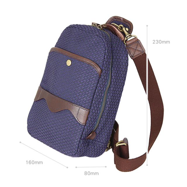【ブランド】マッカモン【シリーズ】刺子【形状】ボディバッグ【外寸】160×230×80mm【重量】400g【素材】刺子(ナイロン、綿の混紡) / 一部牛革