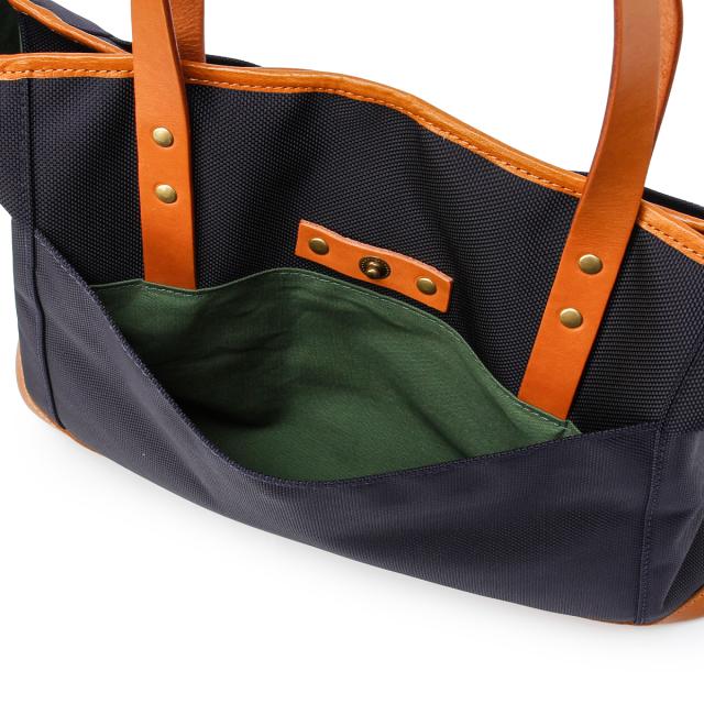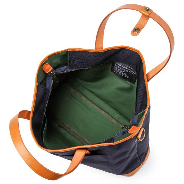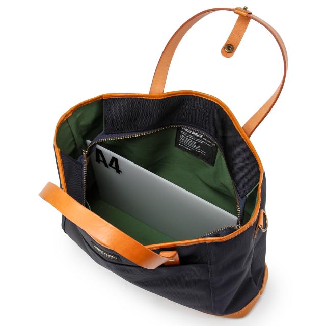 | クラシカルな物が持つ普遍性と、現代のファンクションとの融合をテーマとして展開するバッグブランド 『WONDER BAGGAGE / ワンダーバゲージ』 クラシックなバッグの構成を下敷きに、現代的な要素を加え再構築した「WONDER BAGGAGE」のスタンダードライン 「Goodmans - グッドマンズ」は、高機能ナイロン素材や天然のヌメ革をメイン素材に採用。 確かな素材感と日常生活に寄り添うシンプルなデザインが特徴のバッグシリーズです。 こちらはオン/オフともに使うことを想定しデザインされた、GOODMANSシリーズ定番のトートバッグ。 メイン素材にはバリスターナイロン、底部とハンドル部には経年変化が楽しめる上質なオイルドレザーを使用したモデルです。 前胴2室、後胴1室のポケット配置で 前胴ポケットはスマートフォンや手帳、iPad miniが入る絶妙なサイジングです。 ハンドル部は「肩掛け」「手持ち」どちらでも使えるように長さを設定し、シンプルながらも使い勝手の良いバランスとなっています。 これら使い手の利便性を考え抜いた仕様と、鞄づくりを通して得たノウハウをもとに設計した「DAILY 2WAY TOTE」はビジネスシーンでの使用にかぎらず、普段使いでも活躍するほどの高いユーティリティを兼ね備えています。全体のシルエットにもこだわり、大きすぎず、かつ小さすぎない程良いサイズ感ながら、B4ファイルをすっぽり収納可能です。 |