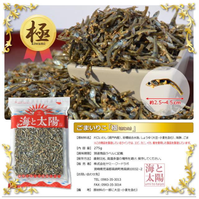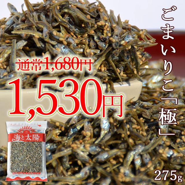 【SALE!150円OFF】<ごまいりこ「極(きわみ)」275g> 単品パッケージ 約2.5cm-4.5cmの瀬戸内産ごまいりこ275g 送料無料 国産 メール便 おつまみ イワシ 小魚 海と太陽 アーモンドフィッシュの小魚だけ カルシウム おやつ クリスマス 年末年始