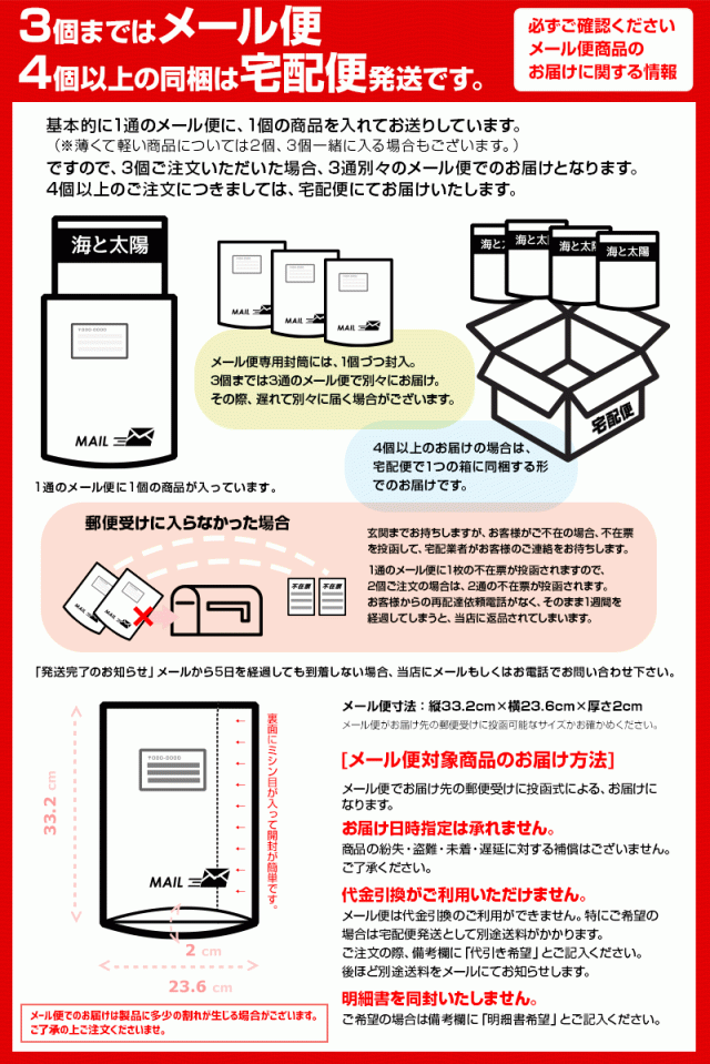配送方法 3個までメール便/4個以上宅配便にて配送。