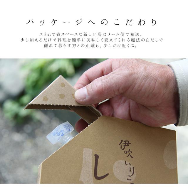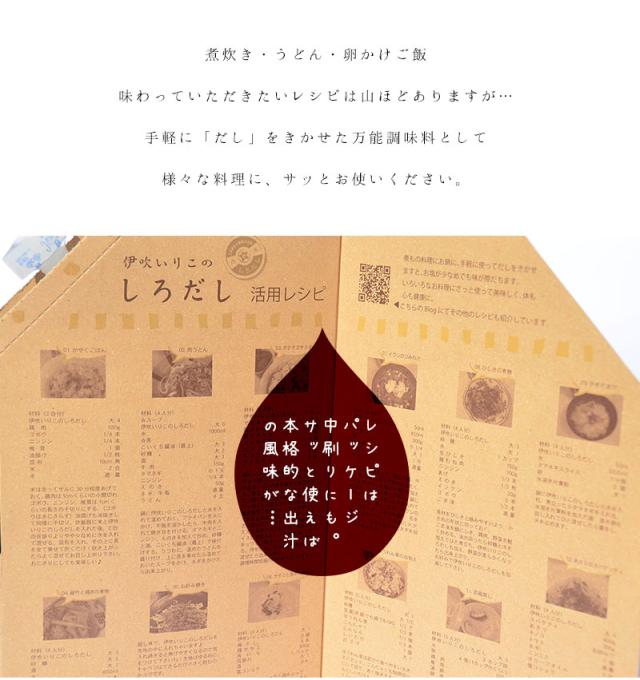 有名な瀬戸内「伊吹島」の煮干しの濃厚なコクと芳醇な味わい。パッケージにレシピ付きなのですぐに活用できます。