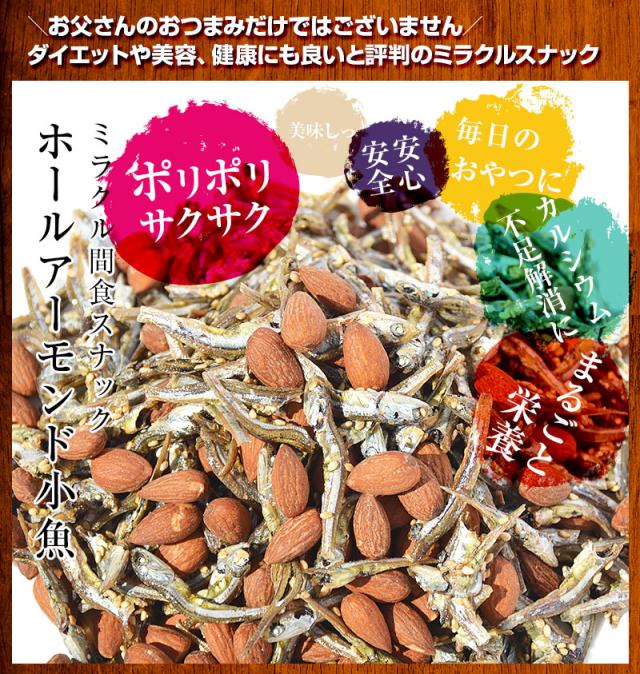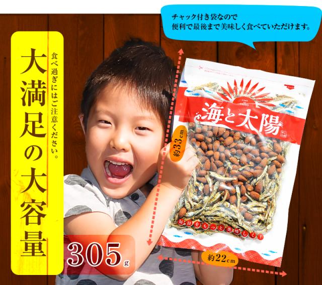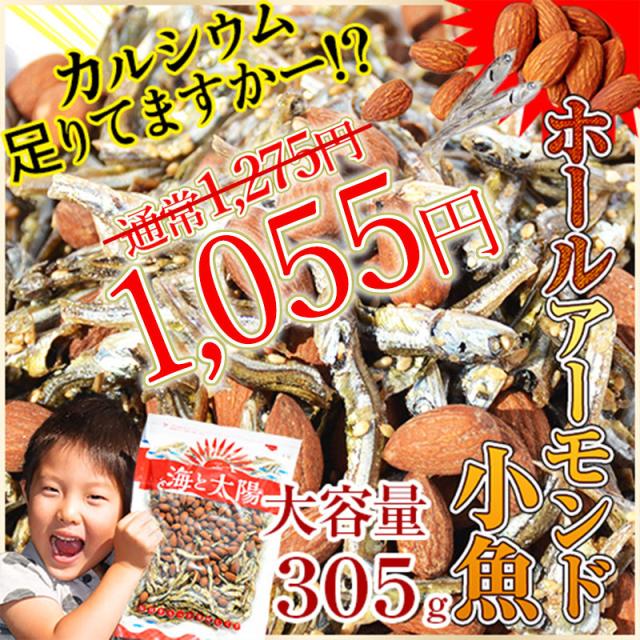 【SALE!220円OFF】<ホールアーモンド小魚>(国産小魚)たっぷり305g! 味付け ロースト 粒アーモンド カルシウム 送料無料 おつまみ メール便 海と太陽 アーモンドフィッシュ クリスマス 年末年始