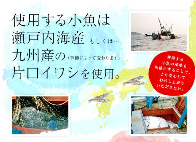 当店の小魚は国産(瀬戸内海・九州産)体長が4〜7cmのものを使用しております。