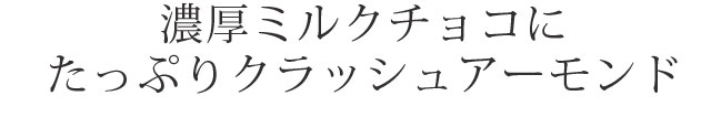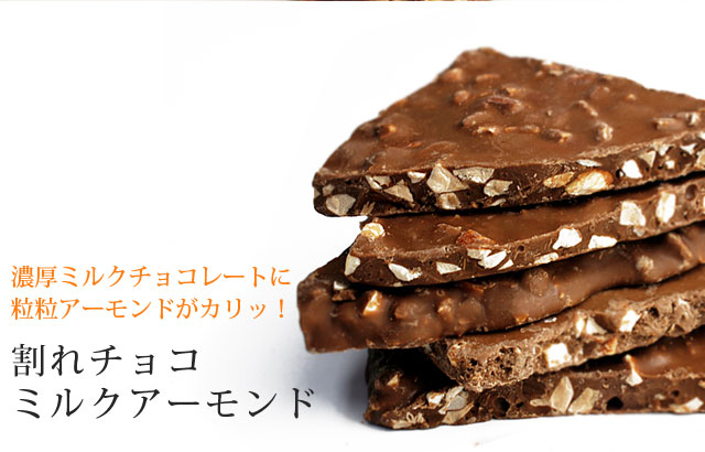 濃厚なミルクチョコレートにクラッシュアーモンドがたっぷりと入った贅沢な割れチョコミルクアーモンド。