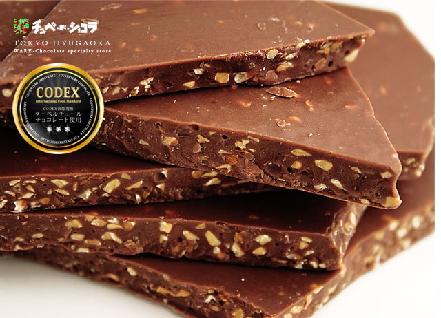 国内の一般的なチョコレートは、このカカオバターの代わりに食物性油脂を使用していることがほとんどです。国際基準のクーベルチュールチョコレートは、「総カカオ固形分35%以上、カカオバター31%以上、無脂カカオ固形分2.5%以上、カカオバター以外の代用油脂は使用不可」など規定があります。チュべ・ド・ショコラの割れチョコは、このCODEX国際規格をクリアした純粋なクーベルチュールチョコレートのみを使用しています。