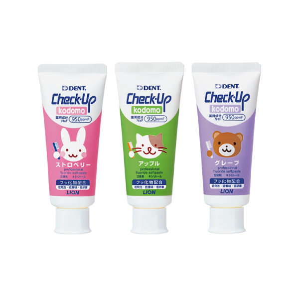 ライオンDENTチェックアップkodomo 3本アソート(ストロベリー、アップル、グレープ、各60g 合計3本)